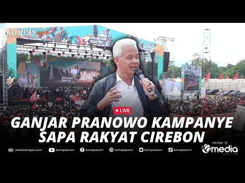 Capres nomor urut 3 Ganjar Pranowo melakukan orasi dengan masyarakat Cirebon di Stadion Utama Bima, Cirebon, Jawa Barat, Sabtu (27/1/2024)...