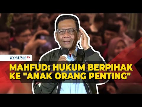 "Betul, hukum Indonesia tumpul ke atas. Artinya apa? Terhadap orang-orang penting, terhadap anaknya orang penting, terhadap istrinya orang penting, terhadap orang yang punya uang, terhadap orang yang punya kelompok, itu hukum sering tidak berjalan," kata Mahfud.