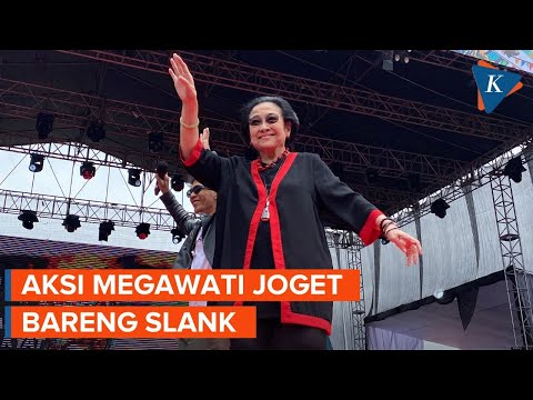 Vokalis grup musik Slank, Kaka mengajak Ketua Umum PDI-P Megawati Soekarnoputri berjoget bersama di kampanye terbuka atau kampanye akbar pertama Ganjar-Mahfud.